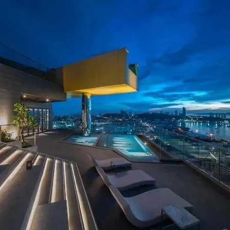 The 1-room Edge Luxury Ocean View Pattaya Apartment is located in the beach area of Pattaya, about 5 minutes' walk from local souvenir shops. Set just steps from ELLE Luggage Central Festival Mall, the apartment comes with a rooftop pool, a Jacuzzi and a sauna.